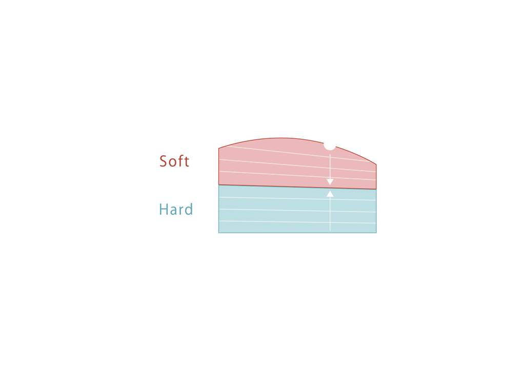 During shots, a great deal of force is applied to the lowest layer of the tip, which is far from the point of contact between the cue ball and the tip. This allows the user to benefit from flexibility when striking the center of the hand and avoid power loss due to stiffness when spinning.