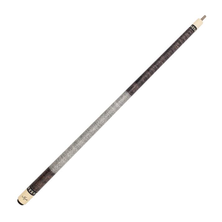 The JS Meucci cue is the perfect blend of style and function. Its high-quality Maple forearm and impact-resistant fiber joints make this cue a durable investment. The smoke stain and finish, as well as the silver, black, and white ringwork, make the cue aesthetically pleasing. The white with black speck