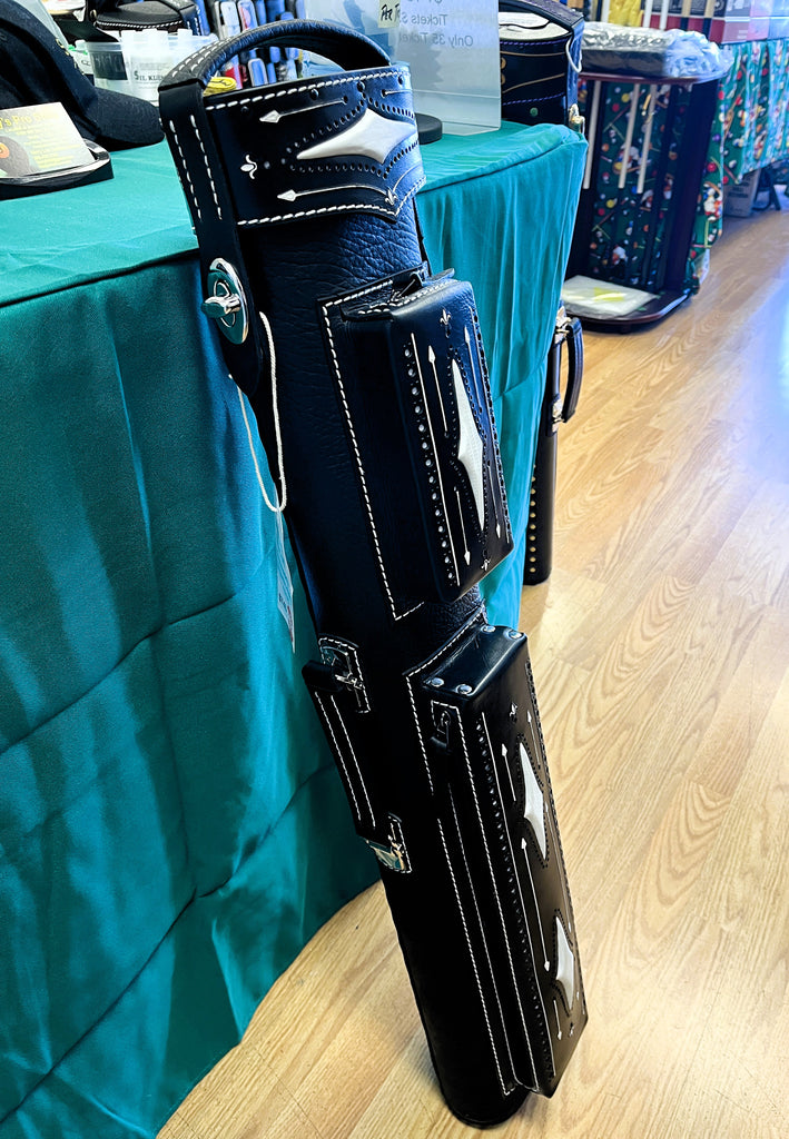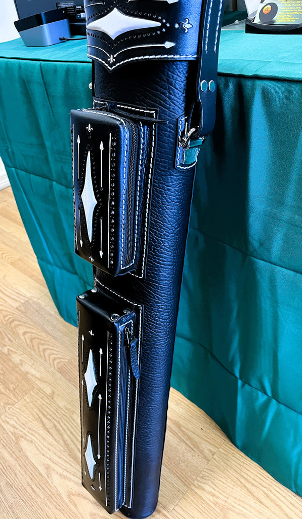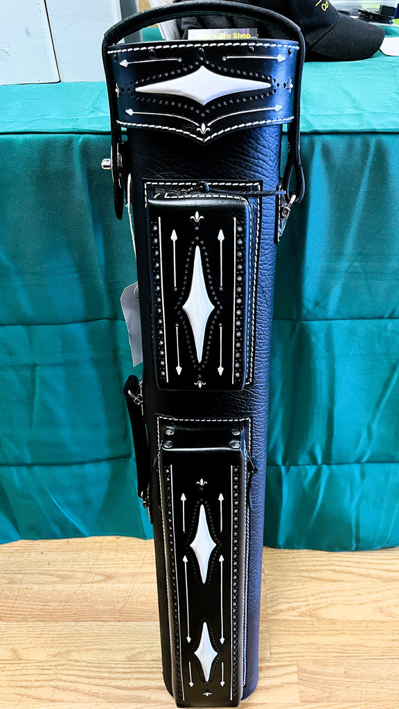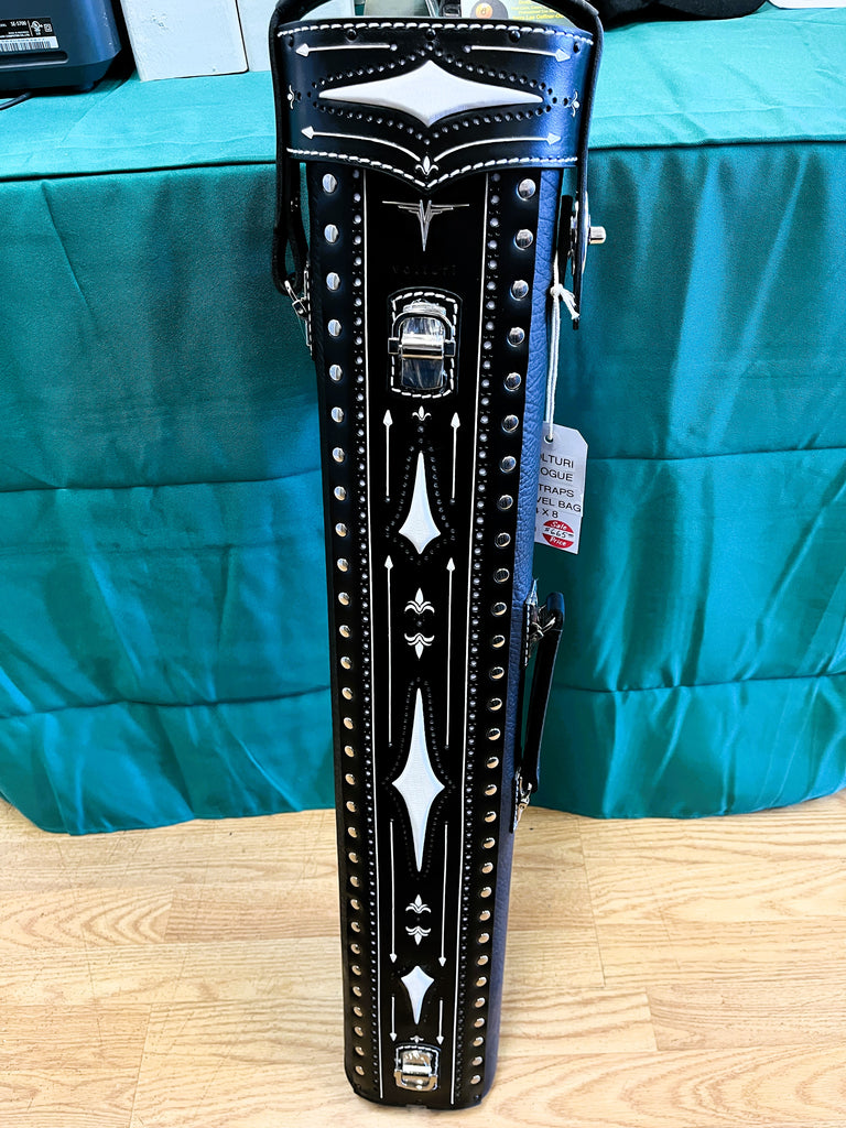 Volturi Brogue Genuine Leather Hand Tooled Leather Cue Case Black/White Lizard Accents 4 Butts x 8 Shafts