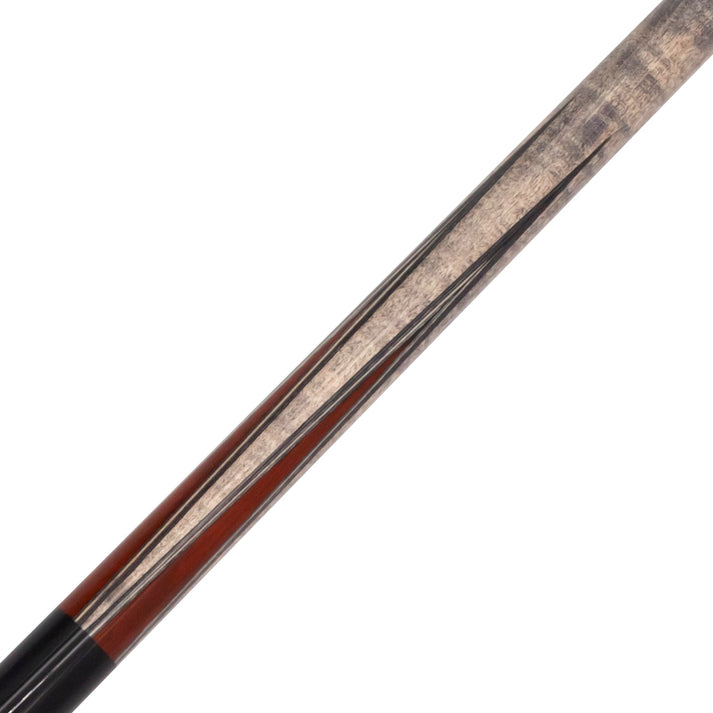 The Freshman 1 pool cue offers a professional-level playing experience. Constructed with a grey-stained birdseye maple forearm and a flat-faced wood-to-wood joint, the cue is designed for optimal control and accuracy. Adorned with black and white veneers, the cue is finished with a black high-impact plastic collar with nickel silver rings and synthetic mother-of-pearl and veneer stitches.